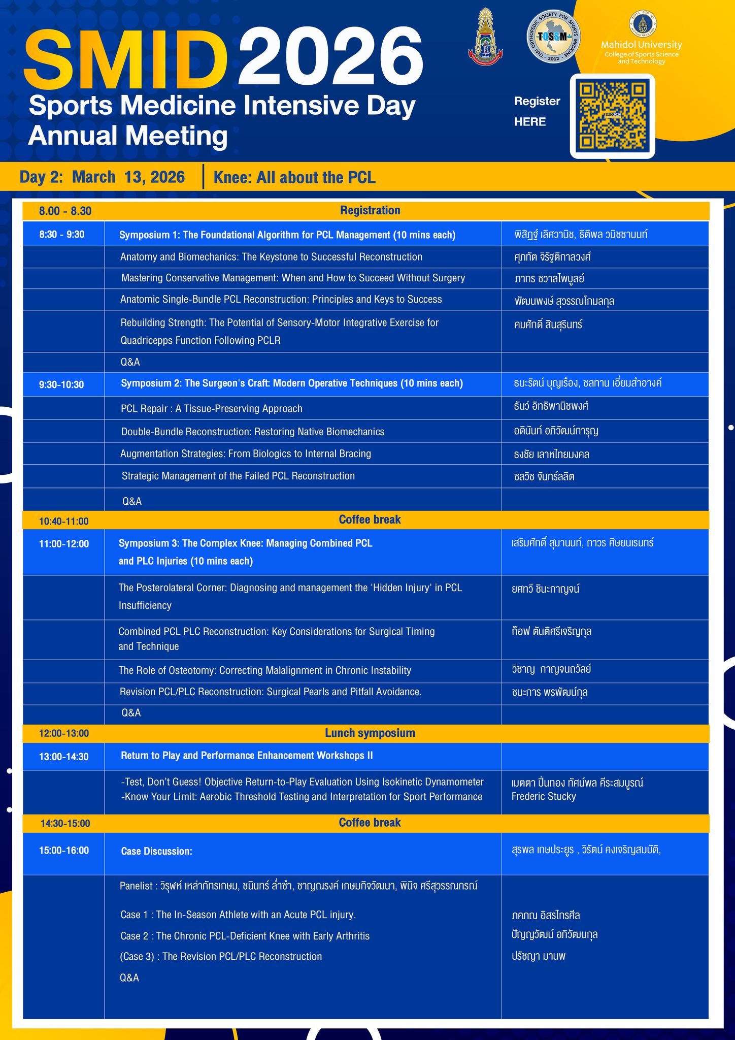 ขอเชิญเข้าร่วมการประชุมวิชาการ SMID 2026 : Sports Medicine Intensive Day